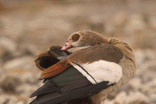 quieted down again. The male Egyptian had been watching his hen intently and