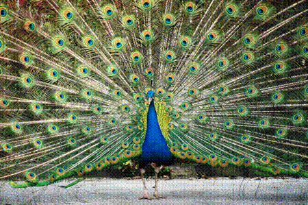 then went to the peacock pen, where a one-eyed peahen had been watching me